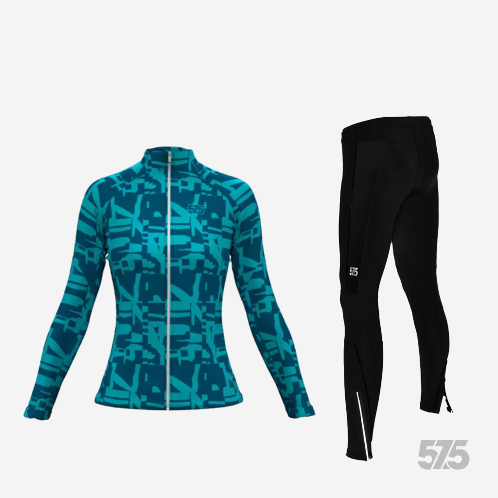 Futófelső BOSTON Női hosszú ujjal - Broken - Blue + Futónadrág RUN+ - STANDARD BLACK