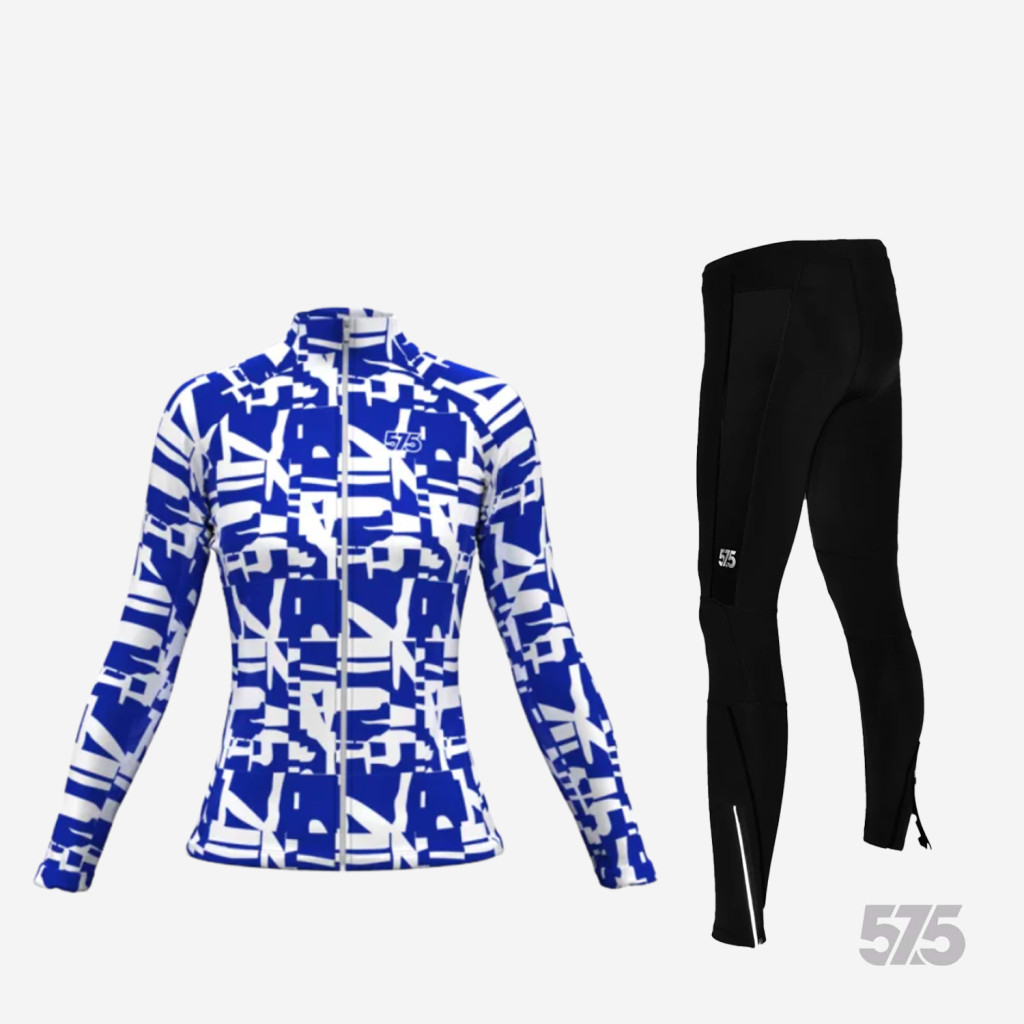 Futófelső BOSTON Női hosszú ujjal - Broken - White Blue + Futónadrág RUN+ - STANDARD BLACK