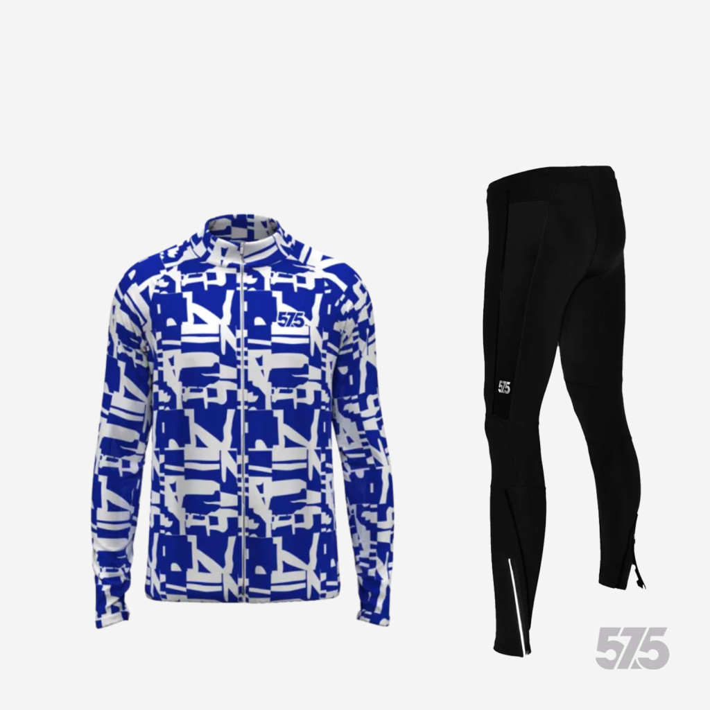 Futófelső BOSTON hosszú ujjal - Broken - White Blue + Futónadrág RUN+ - STANDARD BLACK