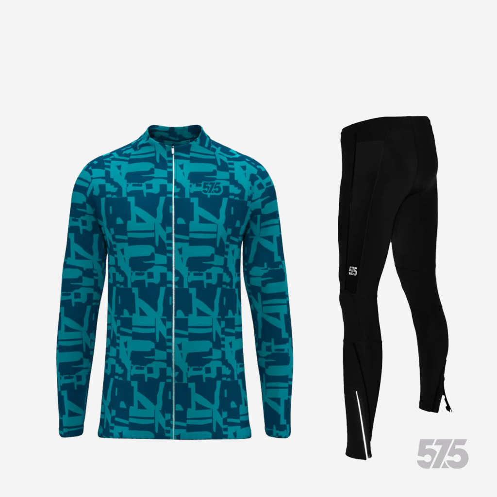 Futófelső OSLO hosszú ujjal - Broken - Blue + Futónadrág RUN+ Winter - Standard Black