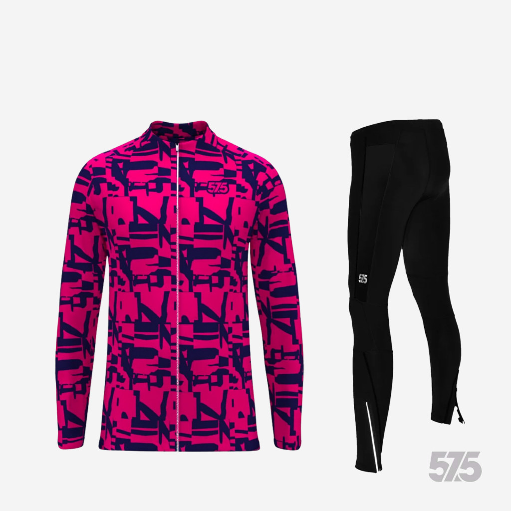 Futófelső OSLO hosszú ujjal - Broken - Redblue + Futónadrág RUN+ Winter - Standard Black