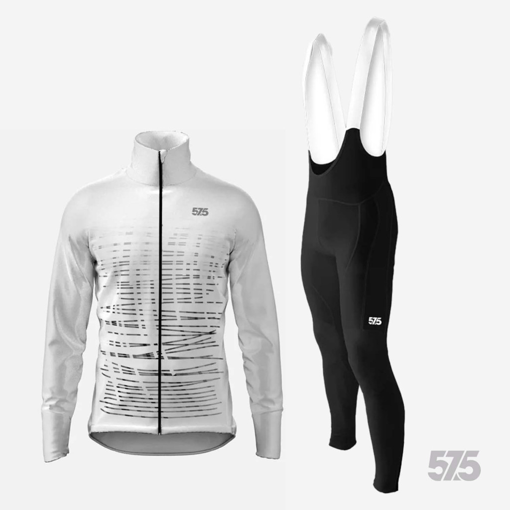 Kerékpáros Thermo felső - Archi White + Kerékpáros hosszúnadrág kantáros - STANDARD BLACK