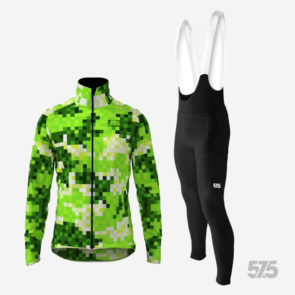Kerékpáros Thermofelső HighPerformance - Pixel Camo Green + Kerékpáros Cargo hosszúnadrág kantáros - STANDARD BLACK