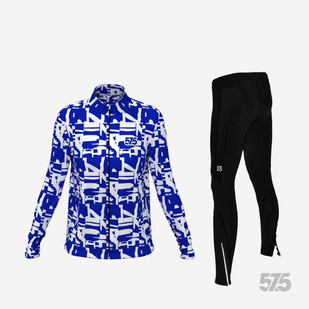 Futófelső OSLO Női hosszú ujjal - Broken - White Blue + Futónadrág RUN+ Winter - Standard Black